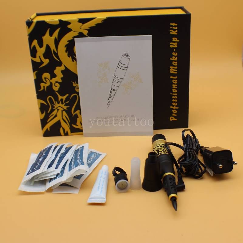 Free Shipping Black Dragon Tattoo Machine Kit For Permanent Eyebrow And Lip Munsu Beauty Makeup Tattoo Gun With Power Supply