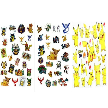 72 Temporary Pokemon Tattoos Pikachu Party Favors 3 Sheet