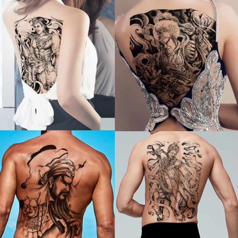 Fake Black Person Body Tattoo Full Back Sticker Large Waterproof Temporary Zhuge Liang Yang Jian Guan Yu Design Chest Man Woman Tattoo Decal