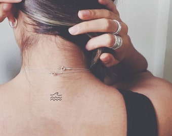 Minimalist Wave And Sun Temporary Tattoo Set Of 3 Etsy