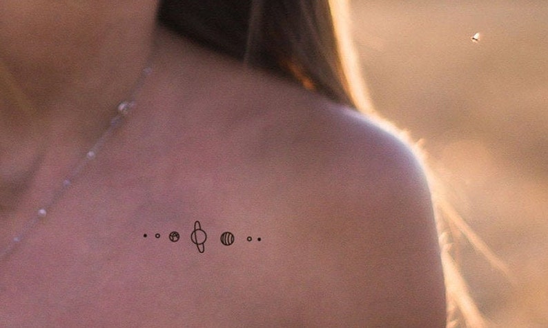 Minimalist Solar System Temporary Tattoo Set Of 2 Small Geometric Solar System Temporary Tattoo With The Head In Stars