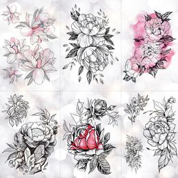 Lotus Flower Peony Temporary Jewelry Tattoo Simple Hand Arm Chest Leg Fake Black Totem Tattoo Ink Painting Sticker Design Festival Party Art