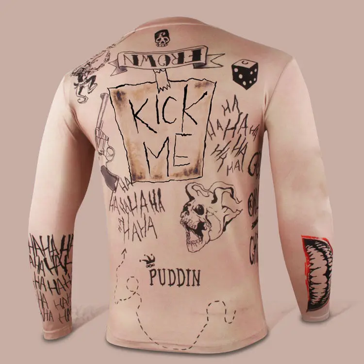 Us 14 85 6 Off Suicide Squad Joker Men S Slim Fit T Shirt Tattoo Print Harley Quinn Joker Deadshot Long Sleeve T Shirts Tops Tee Elastic Fabric In