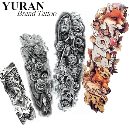 4 Hojas Falso Negro Tatuaje Temporal Mujeres Brazo Completo