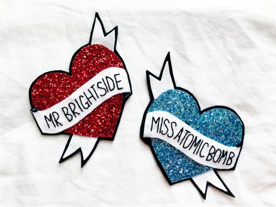 The Killers Band Mr Brightside And Miss Atomic Bomb Embroidered Glitter Heart Banner Patch Pair